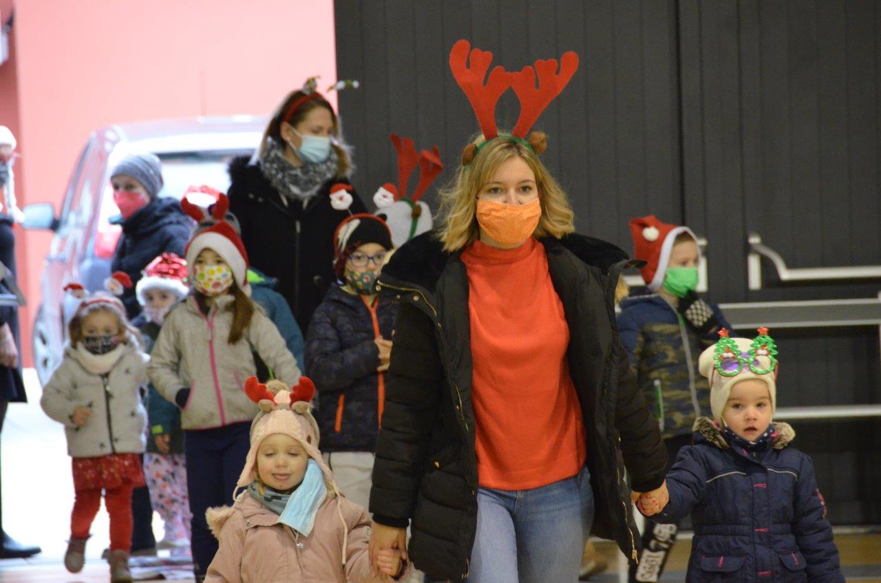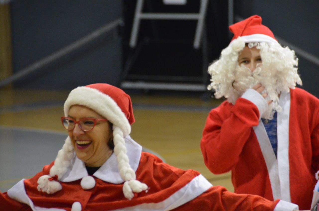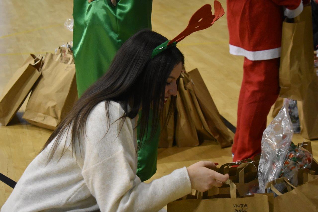 Djed Mraz, njegovi pomoćnici i Baka Mraz, su u sklopu predstave uručili djeci poklone koje je osigurao Grad Labin, a Karla Golja Milevoj se u ulozi Bake Mraz osobno obratila svakom djetetu te se ovim putem još jednom zahvaljuje na porukama koje su roditelji pripremili za svoju djecu. Po završetku predstave učenici su pjevali božićne pjesme na engleskom jeziku, a Kapljice i Loptice su nas naučile riječi pjesme Radost Božića te smo zajedno pjevali, govori prof. Golja Milevoj.