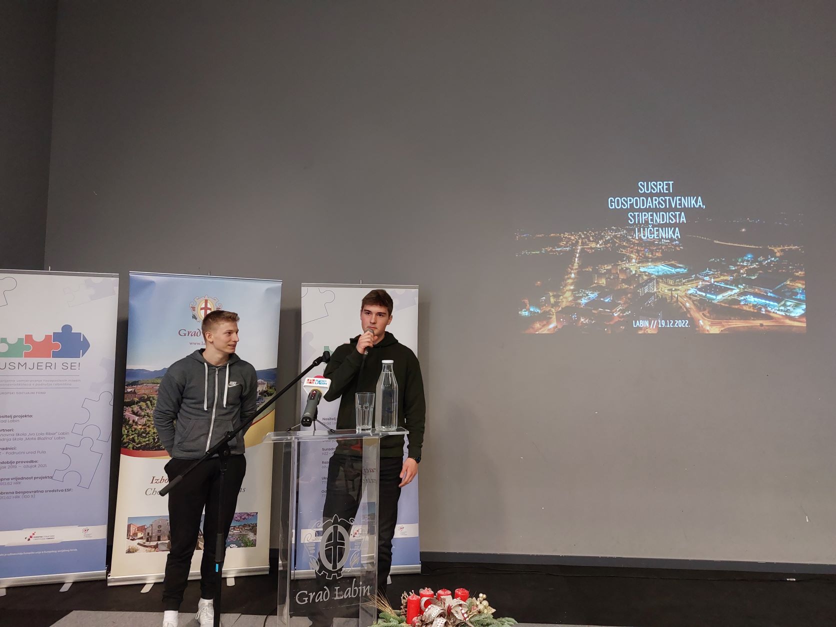 „Hvala vam na svim današnjim savjetima koje ste nam uputili, posebice na onom da nas ništa ne bude strah te da preuzmemo rizike na putu ostvarenja svojih snova. Smatramo da je najbitnije prilikom odabira našeg budućeg usmjerenja da sve ove informacije koje smo danas dobili i s kreativne, gospodarske i poduzetničke strane iskoristimo. Ovaj događaj danas mala je stvar koja nama mladima daje veliki podstreh za dalje, da postanemo bolji ljudi i odaberemo svoje karijere na najbolji mogući način. Hvala vam na tome!“ – ovim riječima prisutnima su se danas na kraju odličnog susreta, gospodarstvenika, stipendista i učenika obratili predstavnici učenika iz Srednje škole Mate blažina, Vito Rocco i Mihael Petrović.