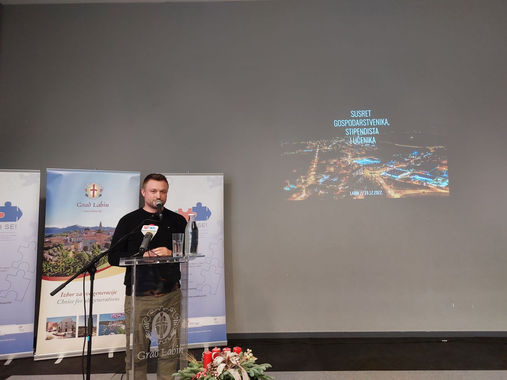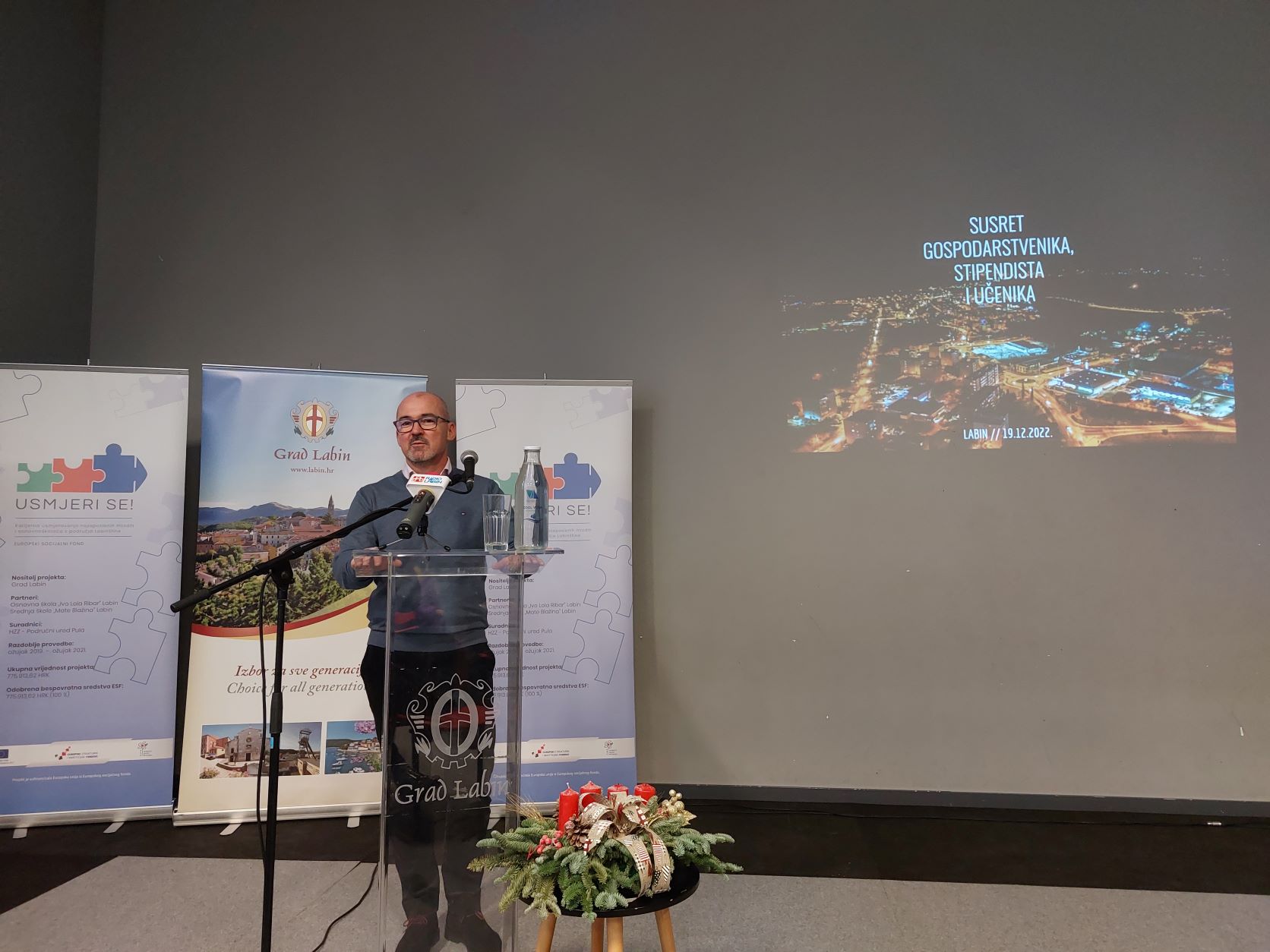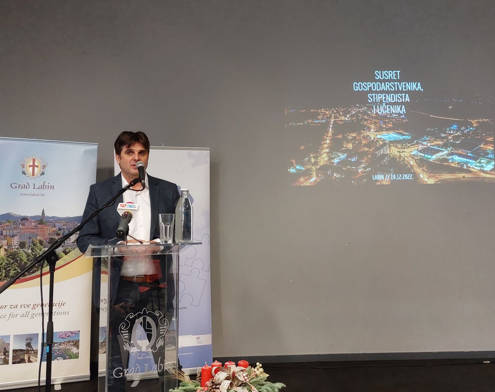 Današnji tradicionalni božićno novogodišnji prijem za gospodarstvenike, učenike i stipendiste, labinskog gradonačelnika Valtera Glavičića održan je u Sportskom centru Franko Mileta. Uz zaista veliki odaziv predstavnika gospodarstva kao i stipendista i učenika, susret je bio veoma motivirajuć kako za mlade osobe tako i za sve prisutne koji su čuli priče o mnogim labinskim primjerima mladih poduzetnika, različitih branši koji su svojom kvalitetom već odavno nadišli granice ne samo Labina već i cijele države. Tako su svoja iskustva i životne priče mladim naraštajima predstavili, Domagoj Ostović, dobro poznati direktor i vlasnik labinske tvrtke Lloyds digital koji je odličan primjer tvrtke u kojoj su zaposleni mahom mladi, kreativni Labinjani željni učenja o digitalnim rješenjima današnjice.