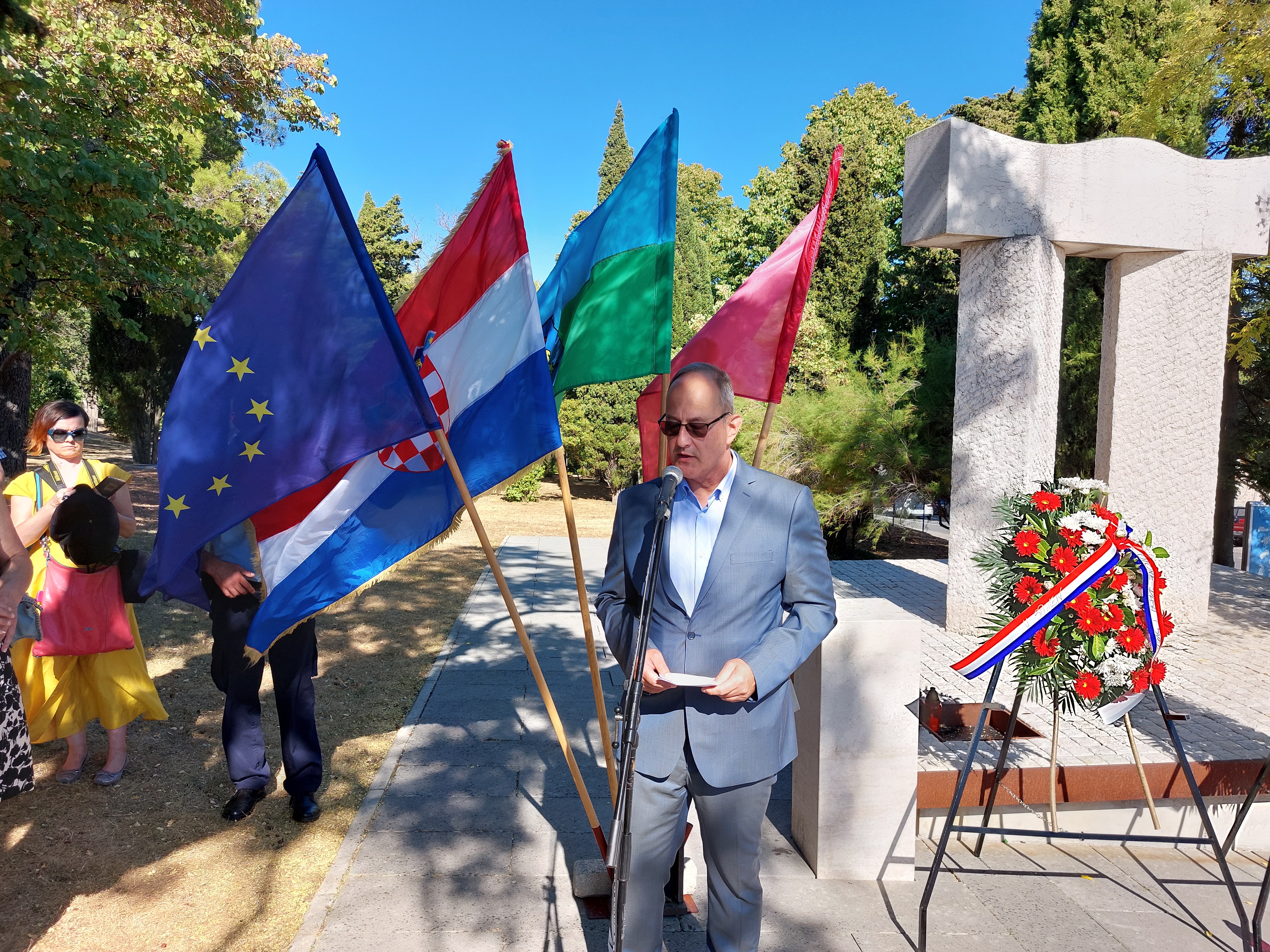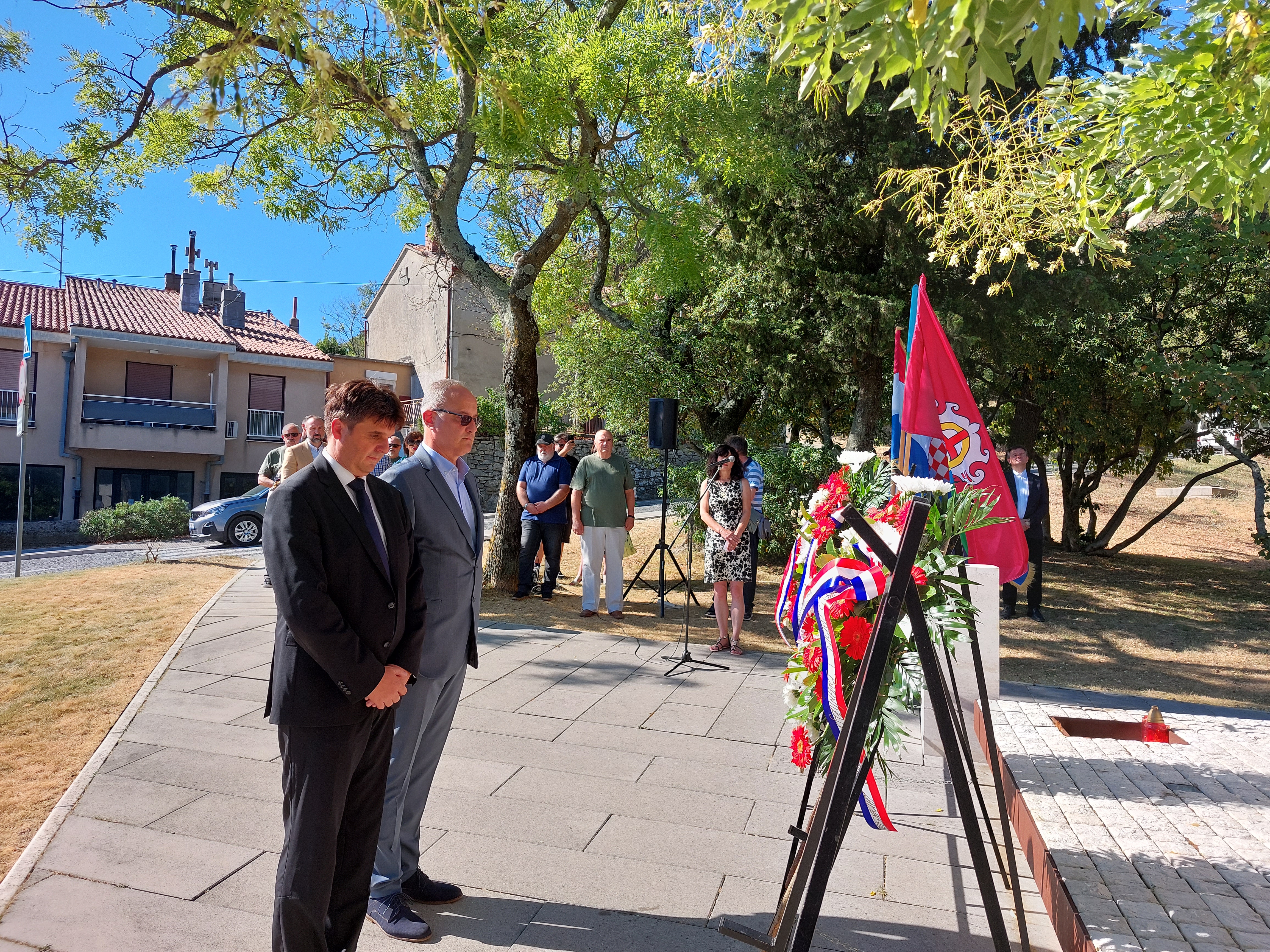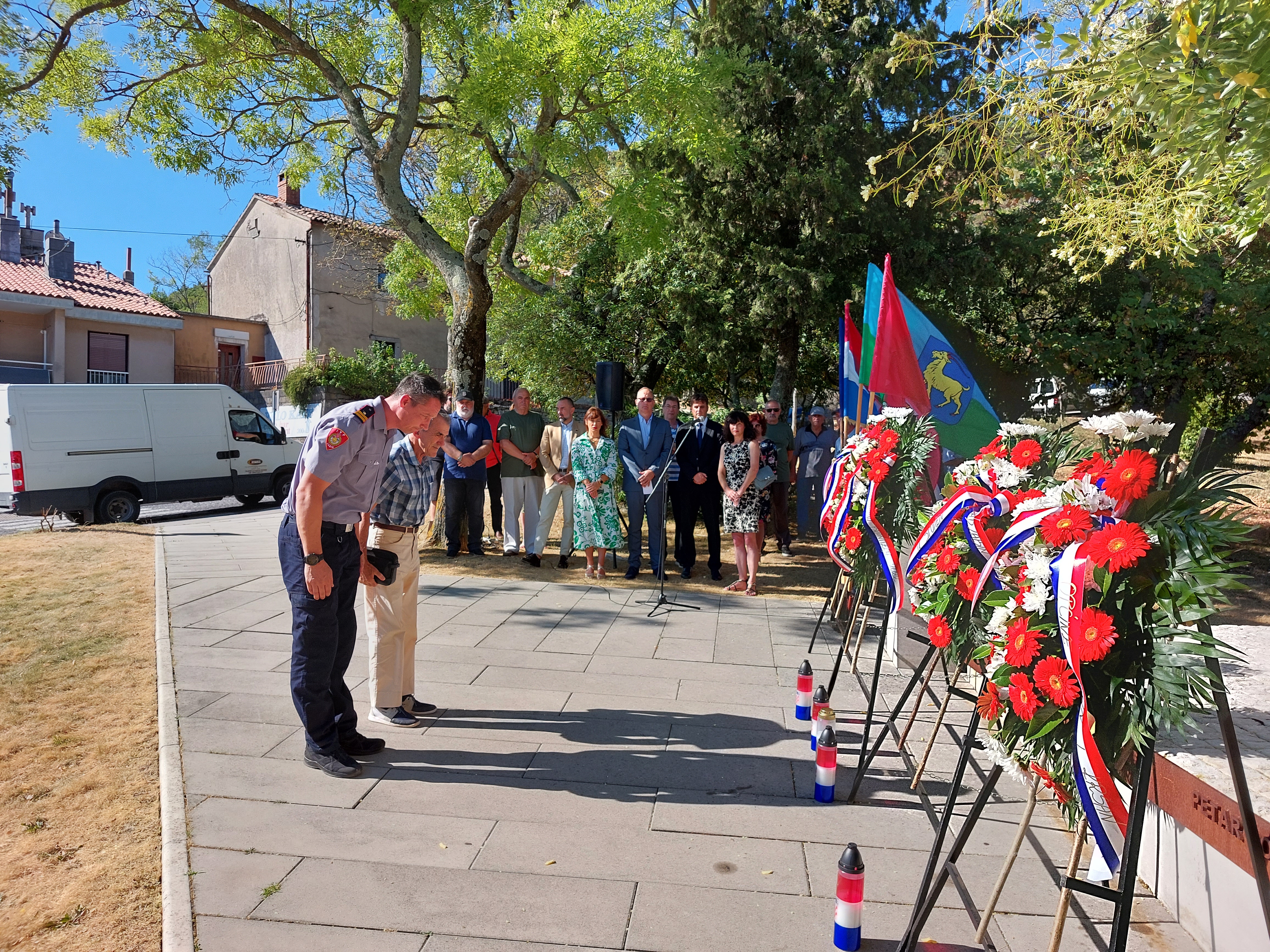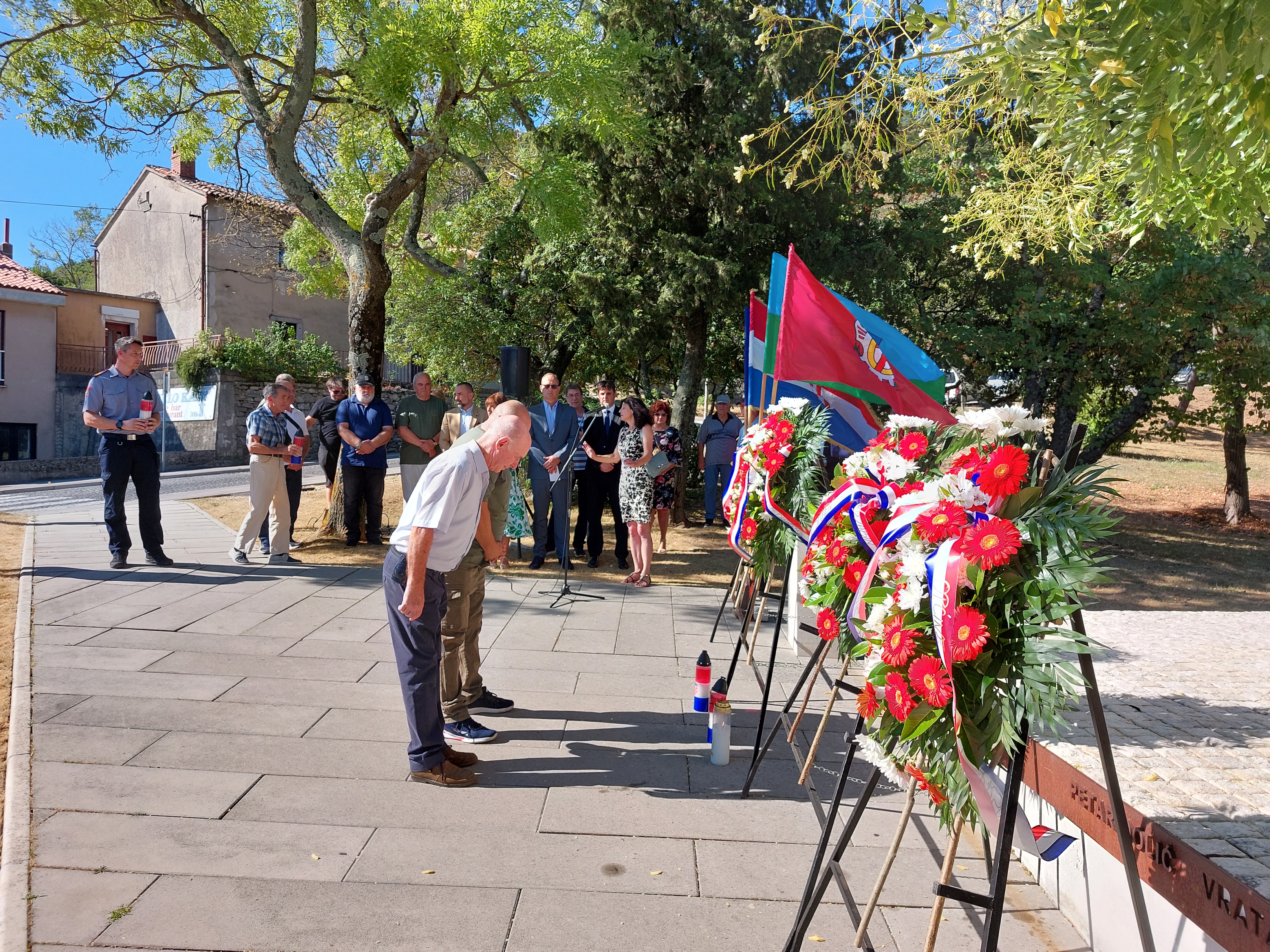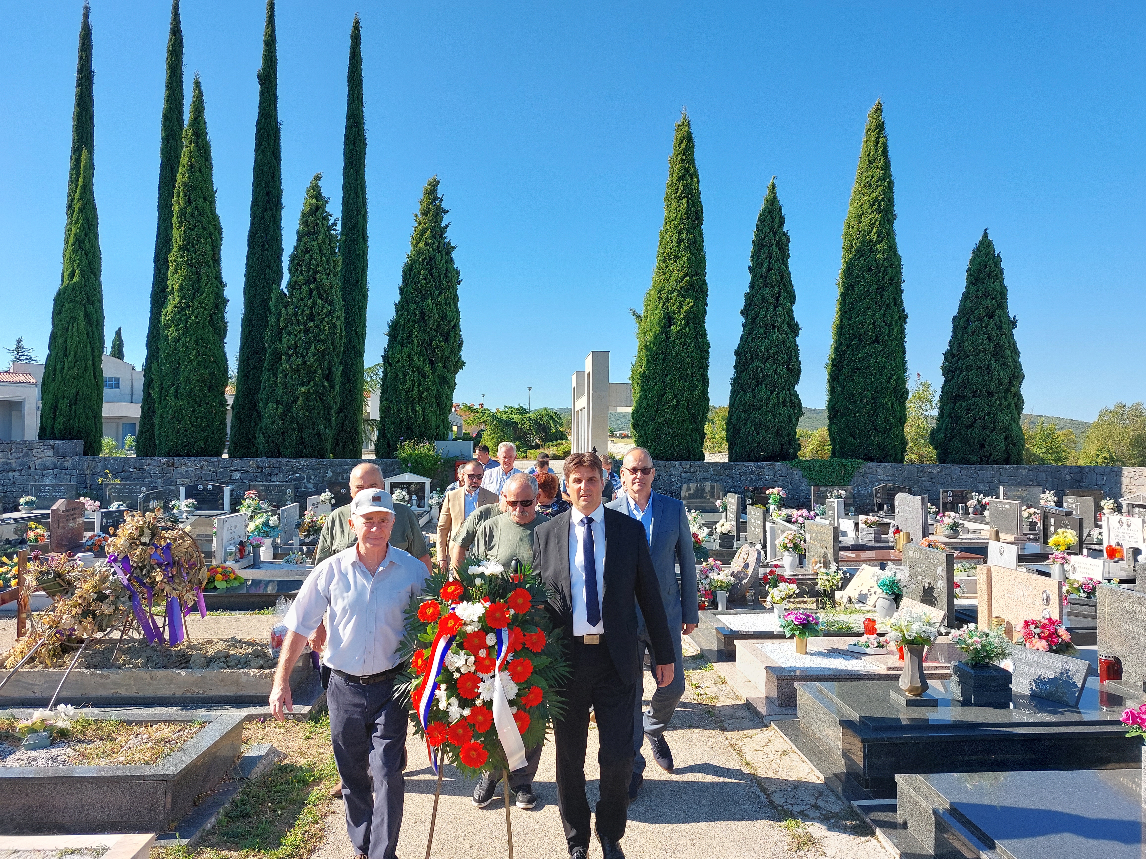 Polaganju su nazočili gradonačelnik Grada Labina, Valter Glavičić, načelnica Općine Raša Glorija Paliska, načelnica Općine Sv. Nedelja Irene Franković, načelnik Općine Kršan Roman Carić, načelnik Općine Pićan Dean Močinić, predstavnici Udruge dragovoljaca i veterana Domovinskog rata, branitelji 119. brigade HV-a, Udruge antifašističkih boraca, Udruge Josip Broz Tito, Javne vatrogasne postrojbe Labin, Stožera zaštite i spašavanja, MUP-a te vijećnika Gradskog vijeća Grada Labina.