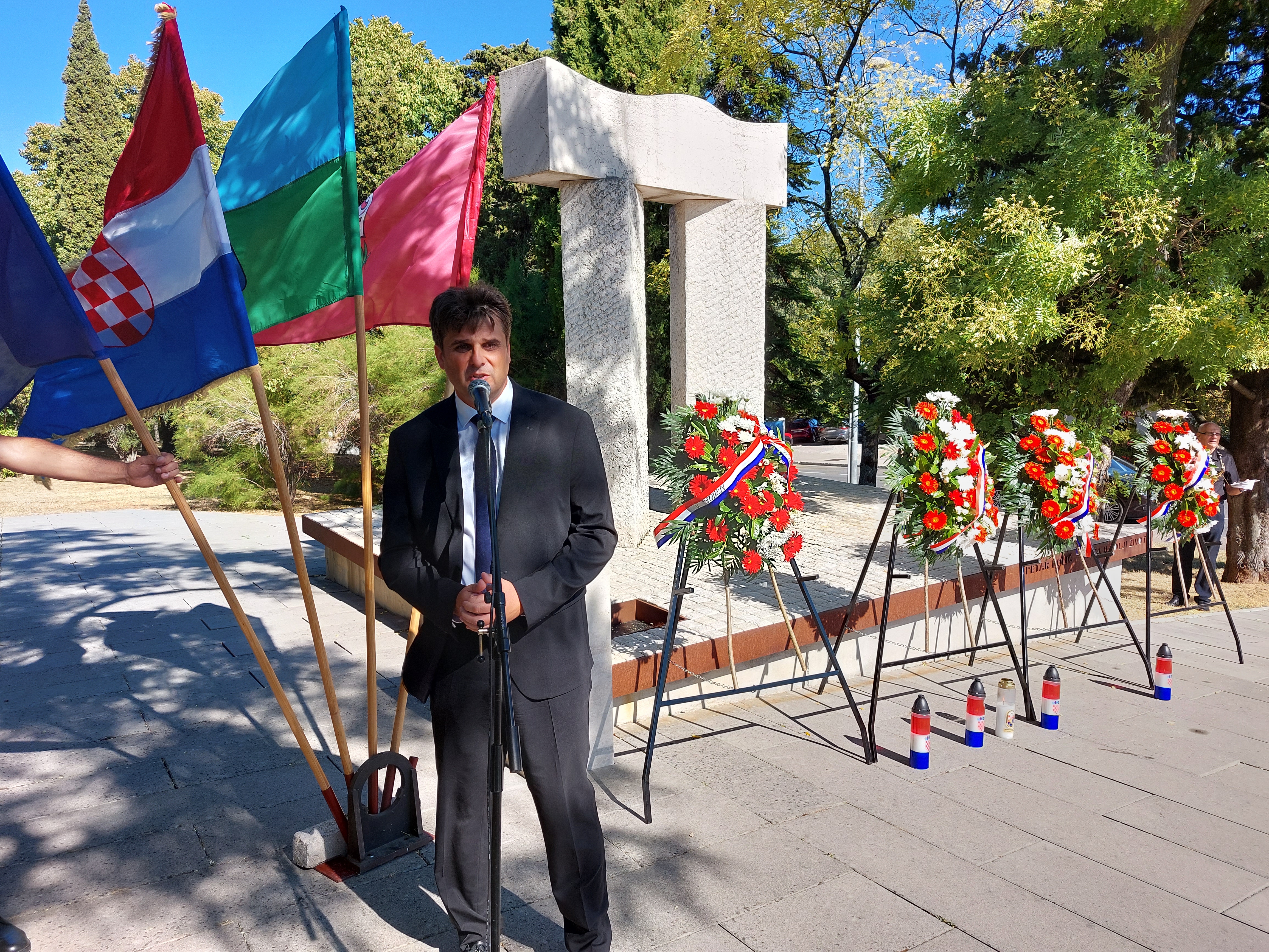 „Kada se sjetimo tih vremena, tog ljeta 90. godine i balvan revolucije, pa 91. i otvorenih topničkih napada na civile u cijeloj Hrvatskoj pa do 95. i oslobađanja cijele Hrvatske. Možemo zaključiti da je sve to skupa krenulo na način da su ljudi koji su mirno živjeli svoje živote, netko je radio u Prvomajskoj, netko u industrijskoj zoni, netko u Rabačkim hotelima, imali svoje planove u životi i nisu razmišljali da će sutra morati u rat. Naši ljudi nisu skloni oružju ni borbi ali su shvatili trenutak i da se dom brani negdje drugdje, a ne ispred vlastitog praga. Pokazali su svijest, razum i hrabrost i domoljublje. Krenuli su i preko noći su postali vojnici. Prikazali su zavidnu disciplinu i moral. Zato smo ponosni na našu 3.Bojnu i cijelu 119. brigadu, sve one koji su bili na ličkom ratištu gdje nisu napravili nijedan krivi potez, nisu ostavili nijedni mrlju na svoj ratni put. Danas se nalazimo na mjestu koje je obilježeno upravo u čast hrvatskih branitelja, ovim predivnim radom nazvanim Vrata u bolji život. Ne znam da li smo baš iskoristili tih 30 godina za bolji život ali ovo što će se dogoditi za par mjeseci u Hrvatskoj kada ćemo ulaziti u Europu bez granica što je bila i prvotna ideja u izdvajanju iz bivše države i konačno živjeti Europu u punom obimu. Svega toga skupa ne bi bilo da nije bilo hrvatskih branitelja, zato od tri najveća datuma u hrvatskoj povijesti najviše cijenim reći: Hvala na Danu domovinske zahvalnosti. To moramo baštiniti i graditi dalje, ali ne iz rutine već sa ciljem da vrijednosti i istinu o Domovinskom ratu prenosimo i na mlađe generacije.“ – istaknuo je gradonačelnik Valter Glavičić