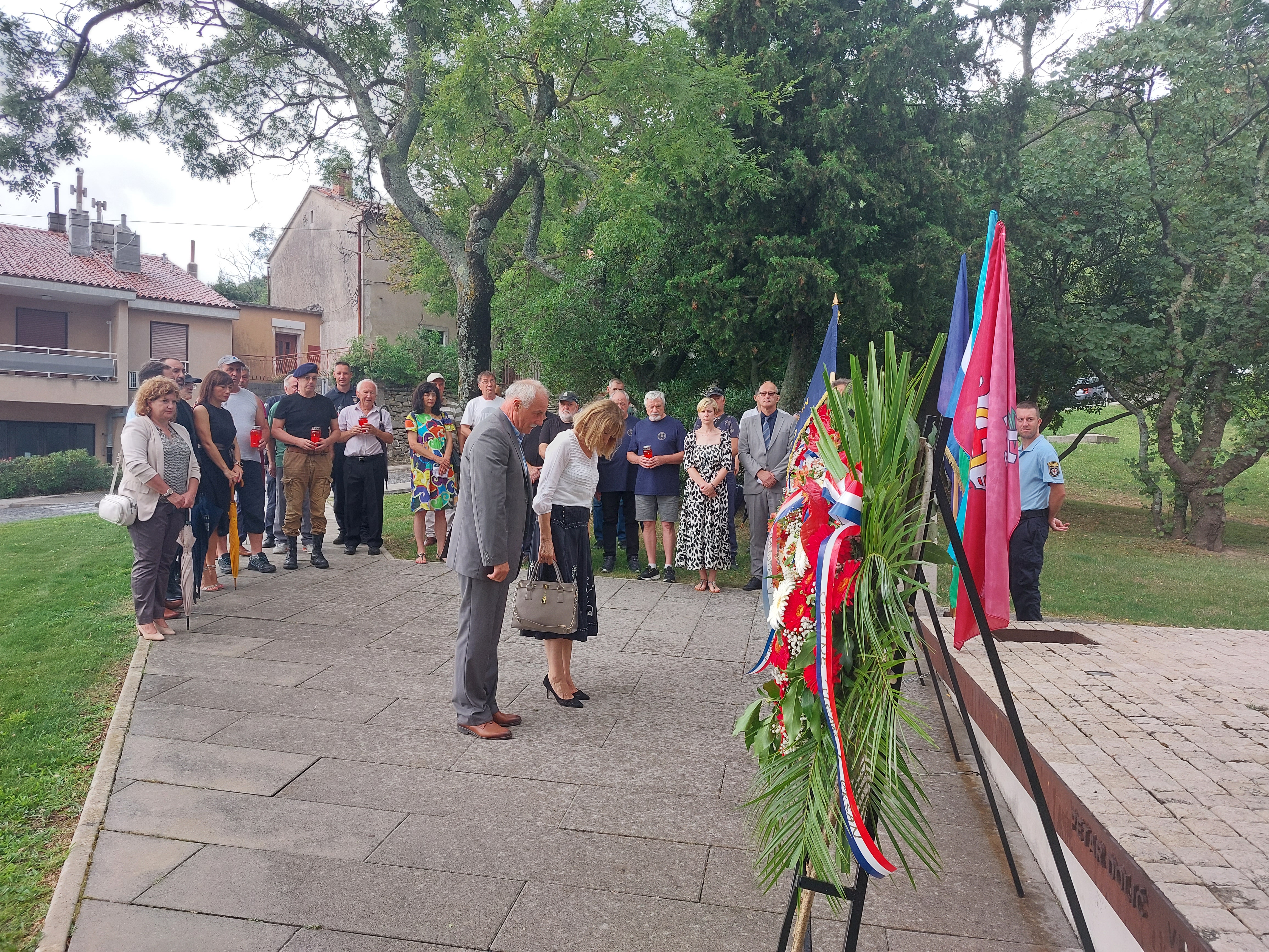 Polaganju su nazočili zamjenica gradonačelnika Grada Labina, Federika Mohorović Čekada, načelnica Općine Raša Glorija Paliska, načelnica Općine Sv. Nedelja Irene Franković, načelnik Općine Kršan Roman Carić, načelnik Općine Pićan Dean Močinić, predsjednica Gradskog vijeća Grada Labina Eni Modrušan, predstavnici brabiteljskih udruga Grada Labina, branitelji 119. brigade HV-a, Udruge antifašističkih boraca, Udruge Josip Broz Tito, Javne vatrogasne postrojbe Labin, Stožera zaštite i spašavanja, MUP-a te vijećnika Gradskog vijeća Grada Labina.