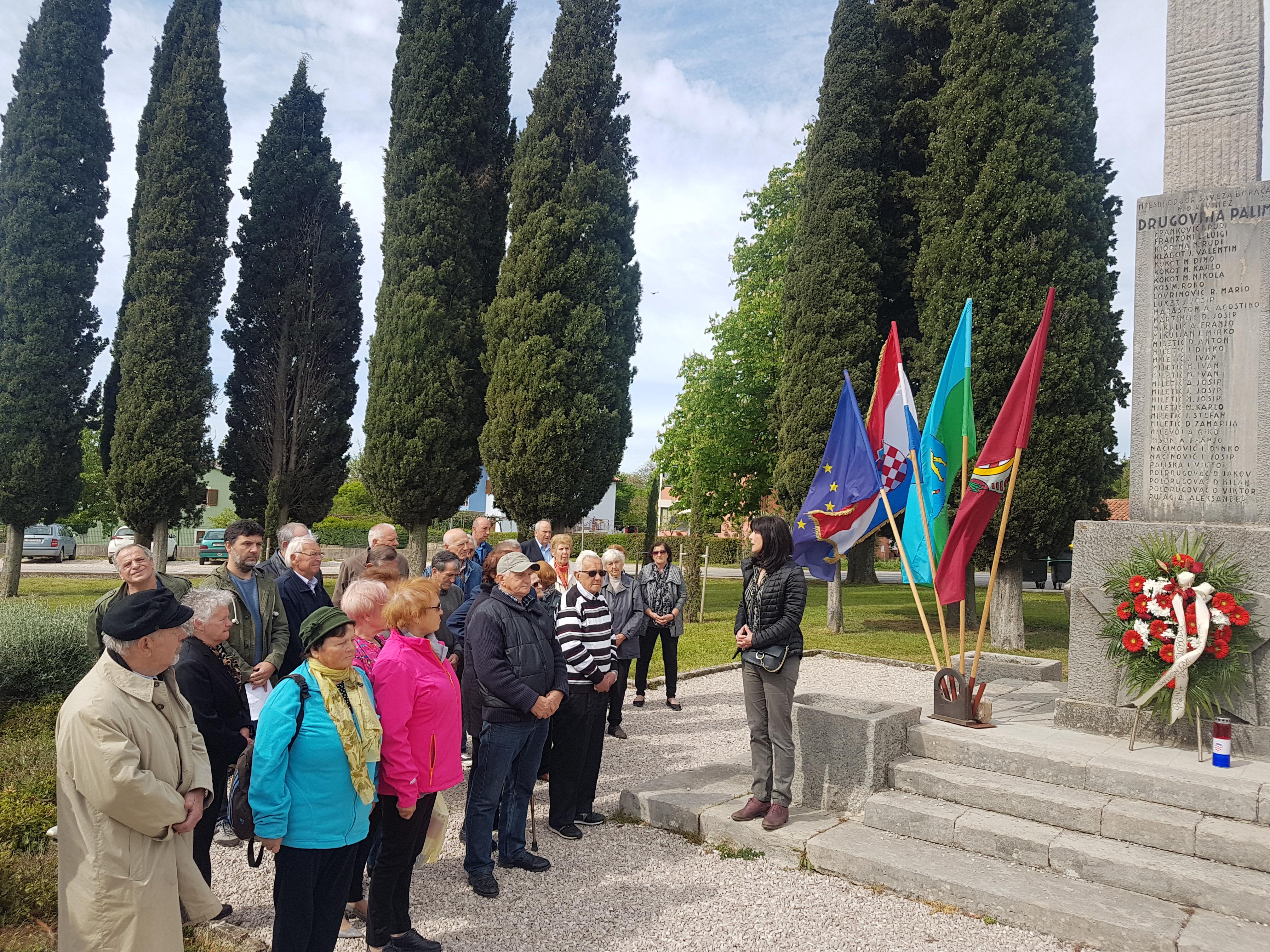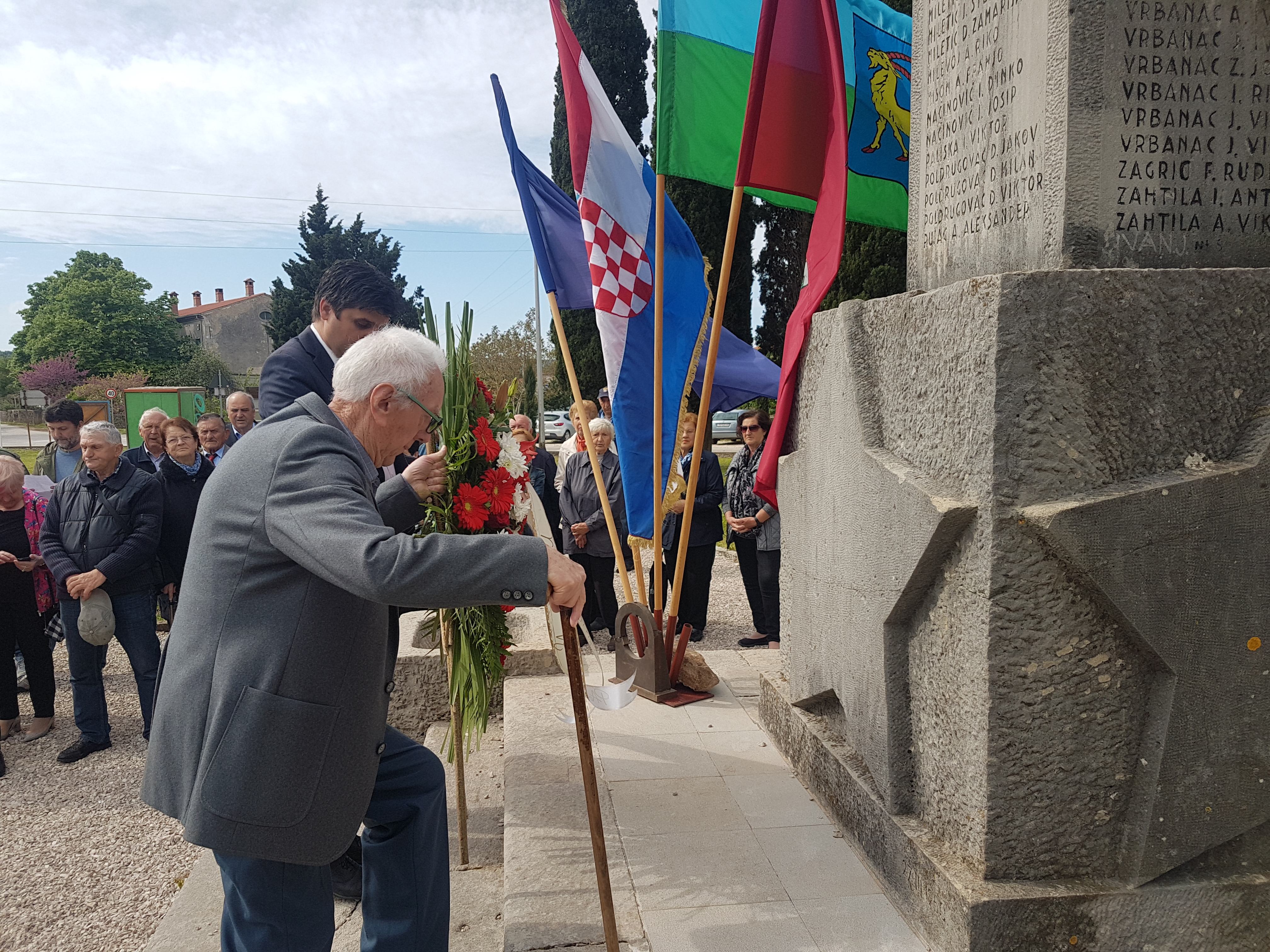 U svom govoru Gradonačelnik je naglasio kako se u današnje vrijeme mnogo razgovara i debatira o događajima iz Drugog svjetskog rata i tumačenju povijesnih događaja. Možemo biti ponosni jer je Labinština uvijek znala odabrati pravednu i točnu stranu. Čestitao je i rođendan gospodinu Leopoldu Družeti koji je uz njega položio vijenac. Leopold Družeta, sudionik borbi pri oslobođenju Labinštine danas slavi svoj 90. rođendan.
