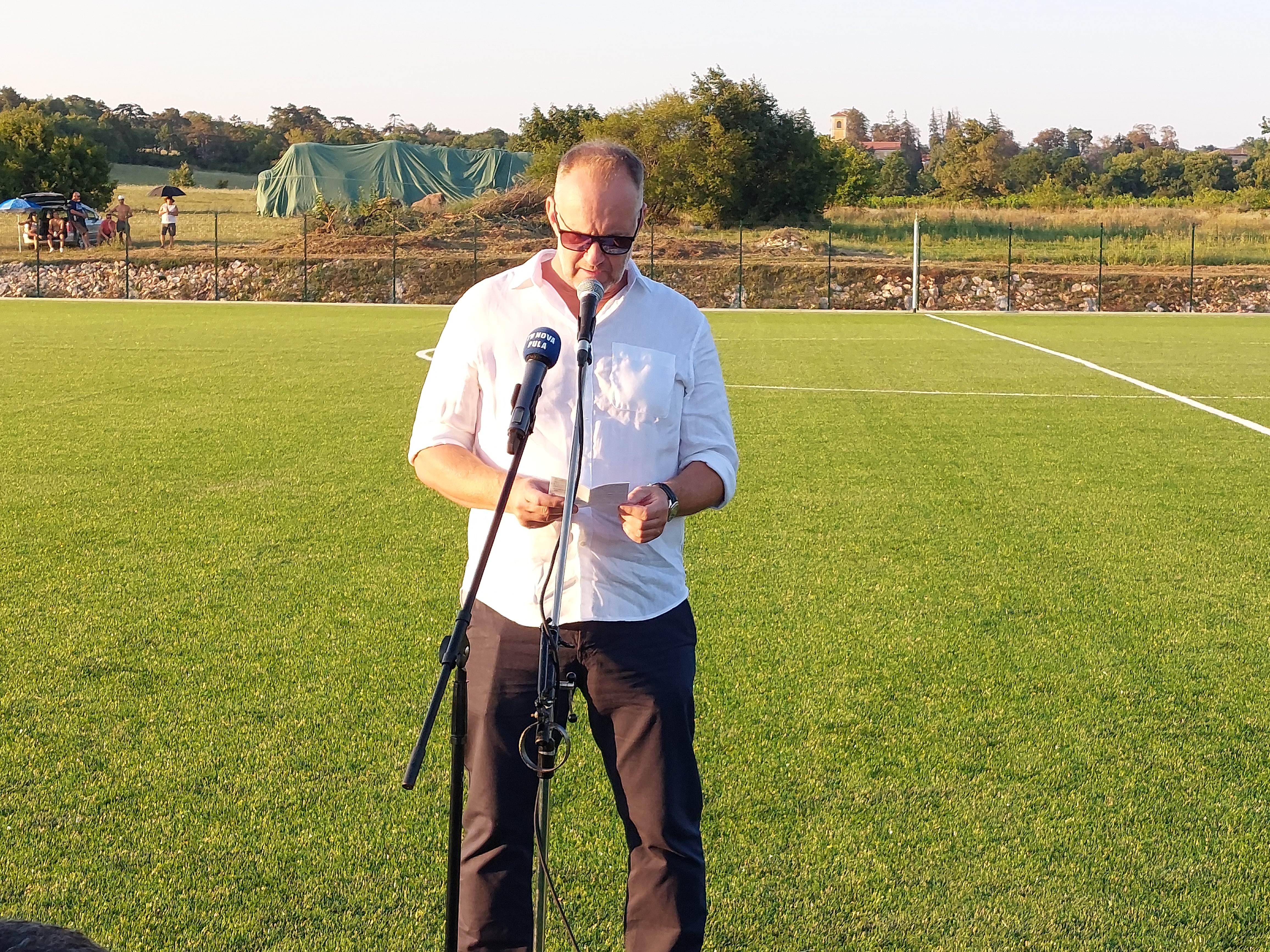 Prisutnima se obratio i Sandi Dobrić, predsjednik NK Rudara u ime svih labinskih nogometnih klubova te u ime SZIŽ, čiji je član Izvršnog odbora. Istaknuo je kako napokon možemo reći da smo dobili nešto što su se sve generacije labinskih nogometaša čekale. Nadam se da ćemo to čuvati i paziti, kako mi kažemo, 'tenditi' te zahvalio svima na doprinosu i pomoći u realizaciji ovako velikog projekta.