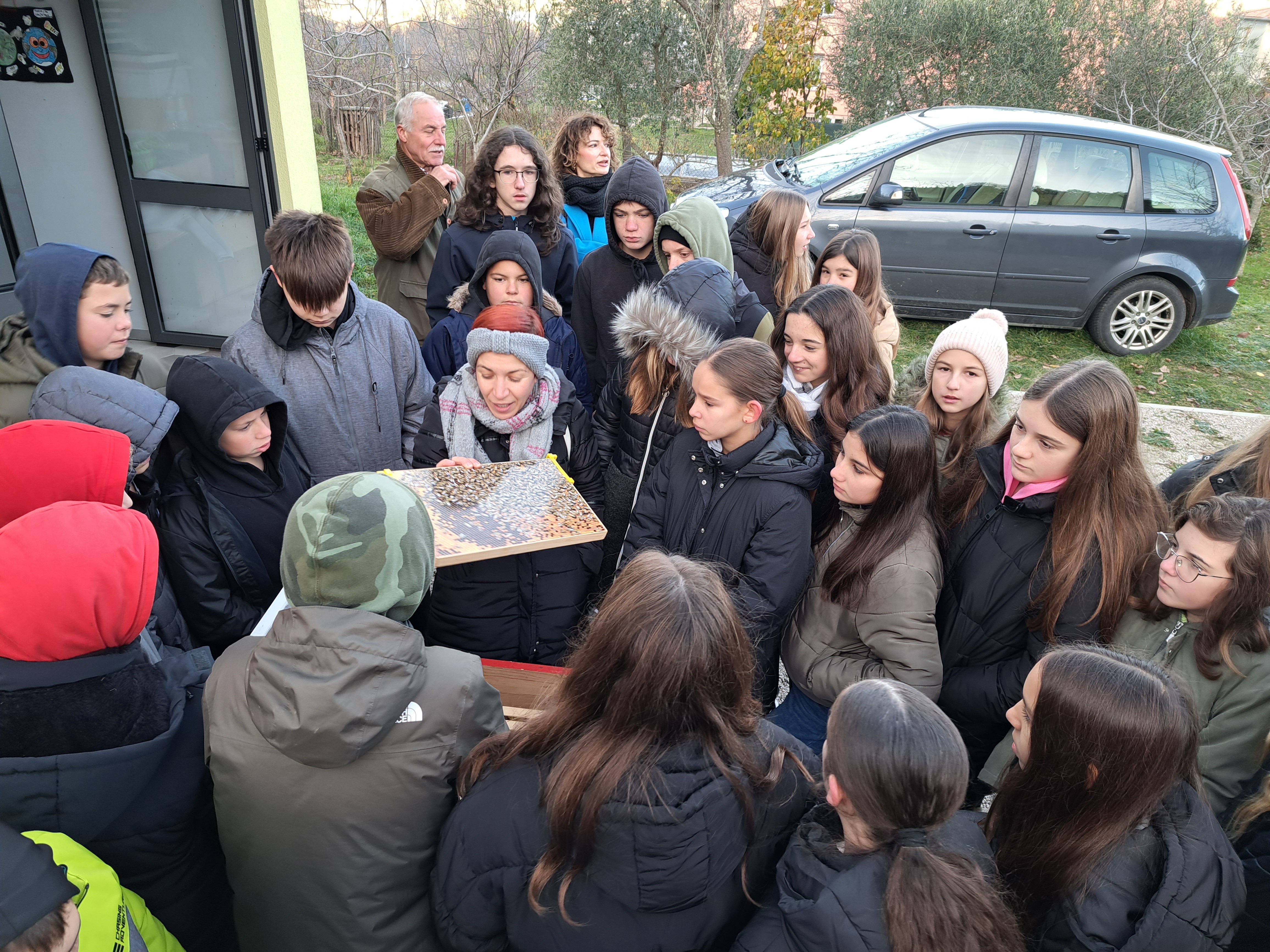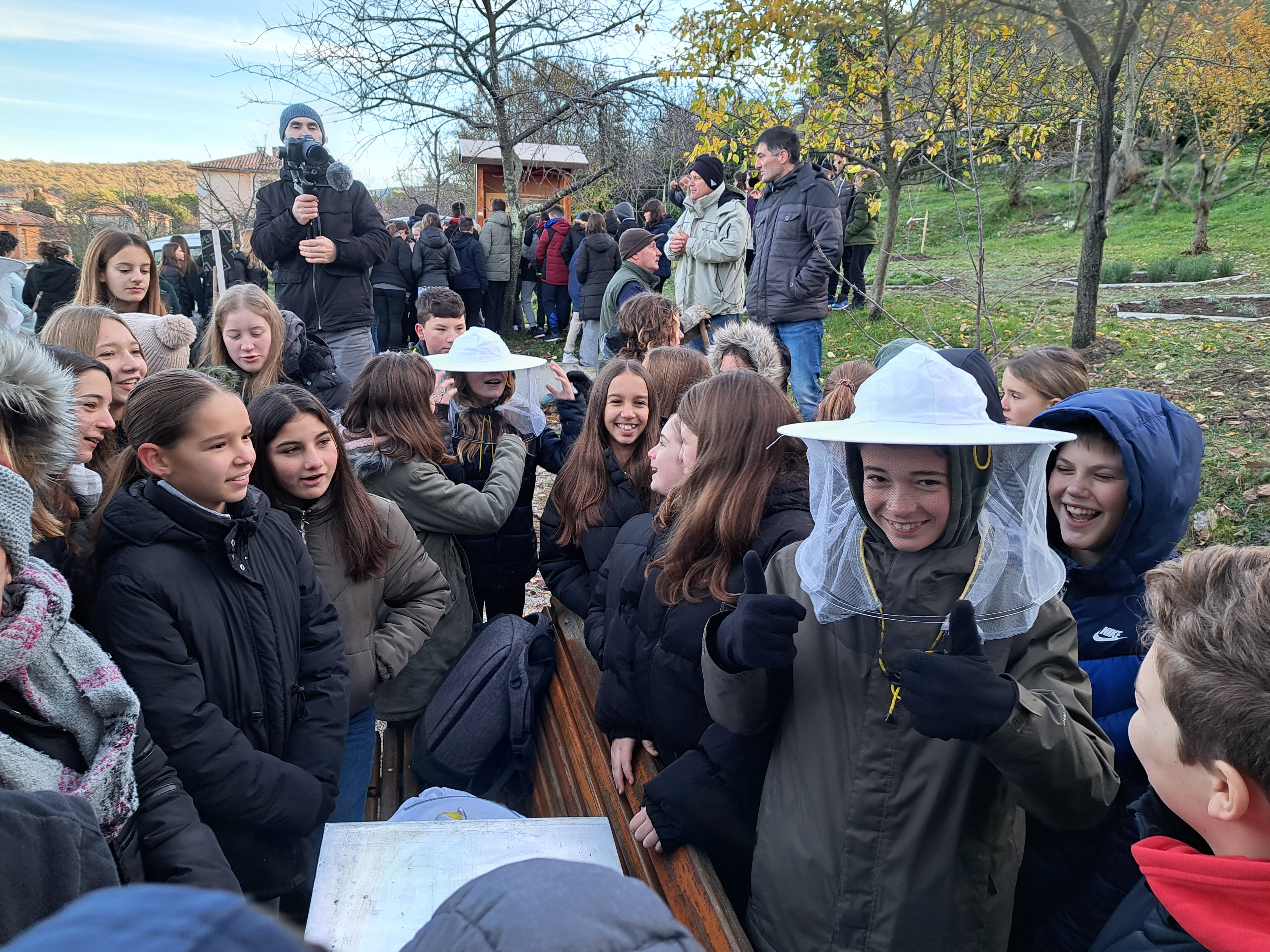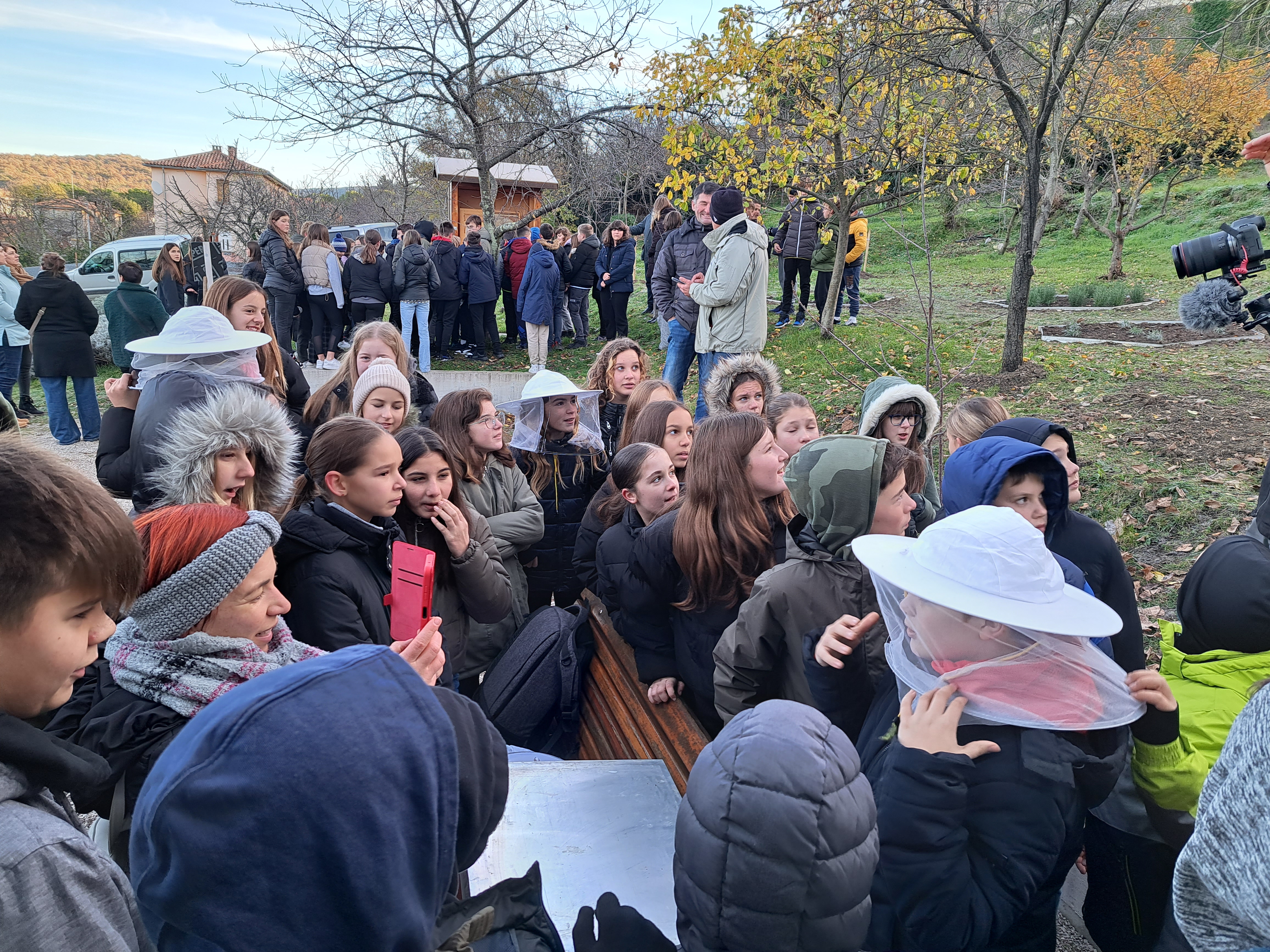 Ovaj je projekt, naime, dobio sponzorstvo u visini od 2500 Eura u sklopu 10. izdanja ovog INA- inog natječaja, pomoću kojeg su labinski pčelari nabavili razne sadnice, dječji vrtlarski alat te pčelarska odijela za naše mališane. I upravo je jučer, unatoč pravim zimskim temperaturama, bilo veoma zanimljivo i živo, kada je 100- injak učenika šestih razreda osnovnih škola „Ivo Lola Ribar“ te Matije Vlačića, kao i 10-ak korisnika Centra Liče Faraguna, posjetilo labinski urbani pčelinjak.